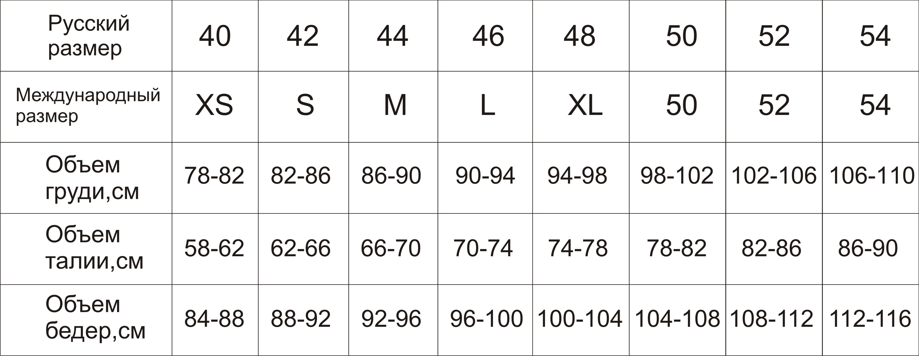 | ЖЕНСКИЕ РАЗМЕРЫ: | ||||