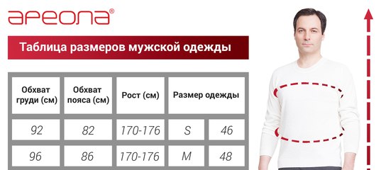 Таблица размеров короткой мужской одежды: (*Также предусмотрена конвертация международных размеров)