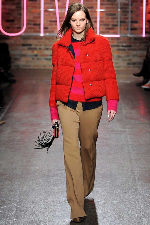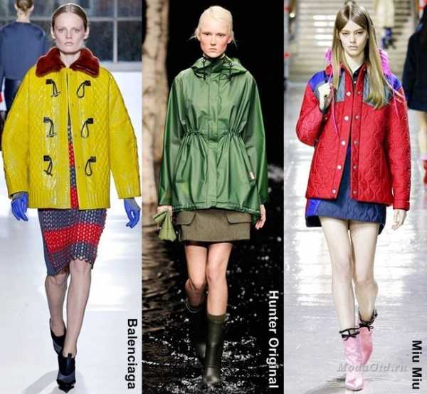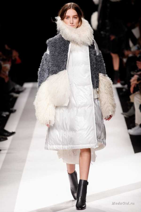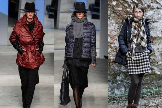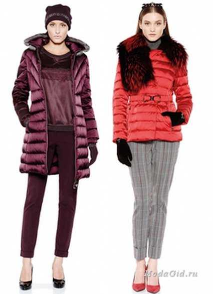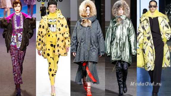 Обратите внимание на модные приталенные стеганые пуховые пальто с трапециевидным низом как у Sacai и Hunter Original. Также в моде спортивные пуховики и куртки с ярким принтом, как у бренда Manish Arora. Одним из главных трендов 2014-2015 становится пуховик с металлическим блеском (Fay и Topshop unique). Фото