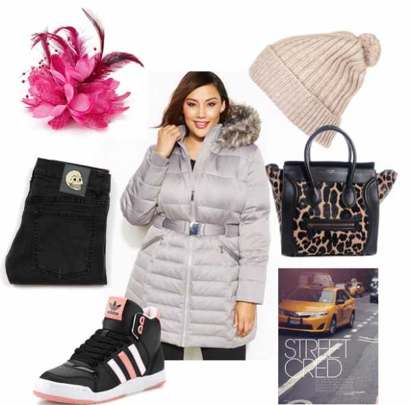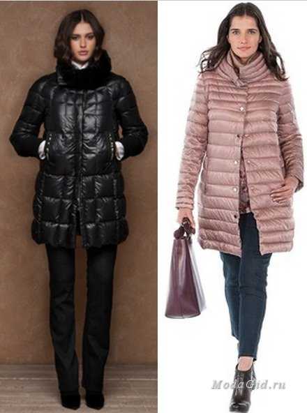Полным женщинам пуховики подходят тоже, только стоит подбирать модели, длина которых ниже колен. Такое классическое сочетание помогает визуально удлинить фигуру, скрывая ее полноту и делая более стройной. В таком случае следует остановиться на обуви с невысоким каблуком (в сочетании с брюками).