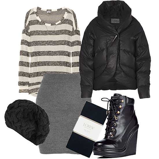 С чем носить пуховик? Фото показывает, что и брюки, и юбки имеют право составить стильную пару пуховику. К прямым моделям пальто лучше подбирать штаны, а к приталенным – юбки и платья.