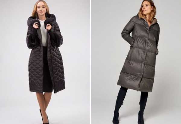 - Предлагаются длинные женские пальто-пуховики, стеганые в мелкий или крупный ромб.