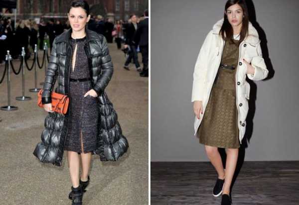 Несмотря на то, что пуховики в своем большинстве – это «подспортивненный» вариант одежды, встречаются среди них и экстравагантные, и даже, не поверите, элегантные экземпляры. В таком случае под пуховиком может скрываться даже платье.