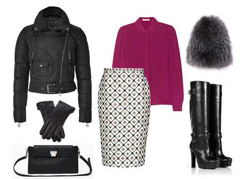 Пуховик до середины бедра можно носить с юбками и платьями. Под юбки-мини наденьте ботфорты без каблука, лучше с широким голенищем, чтобы создать непринужденный образ. Юбку-карандаш можно носить в комплекте с сапогами на устойчивом каблуке, желательно по колено.