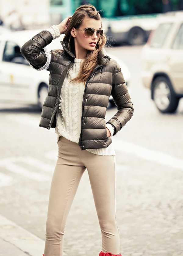 Обратите внимание, что такой пуховик нельзя совмещать с классическими брюками, так как такой образ будет выглядеть весьма неудачно и сделает вашу фигуру странной.