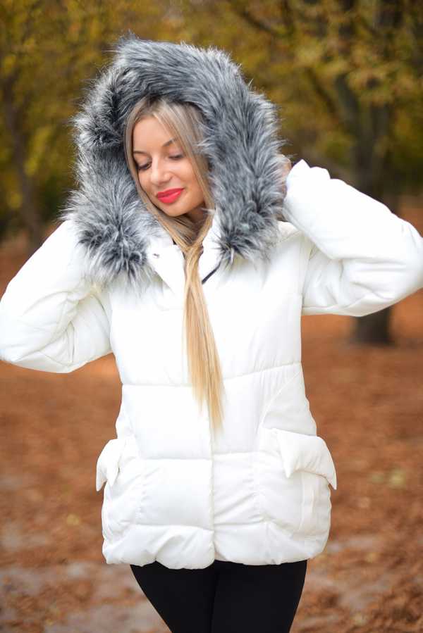 - Трудно устоять перед соблазном роскошных изделий, в которых используются вставки натурального меха в передней части пуховика.