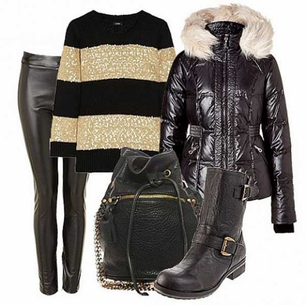 Если вы решили надеть пуховик с юбкой или платьем, то сочетайте его с высокими сапогами на устойчивом каблуке, желательно с узким голенищем. Сапоги с широким голенищем будут прекрасно смотреться с узкими джинсами или лосинами.