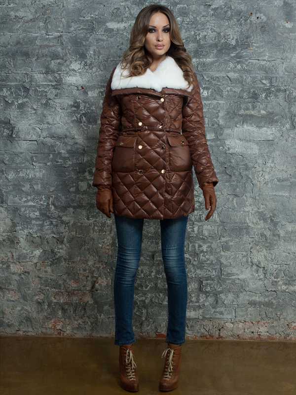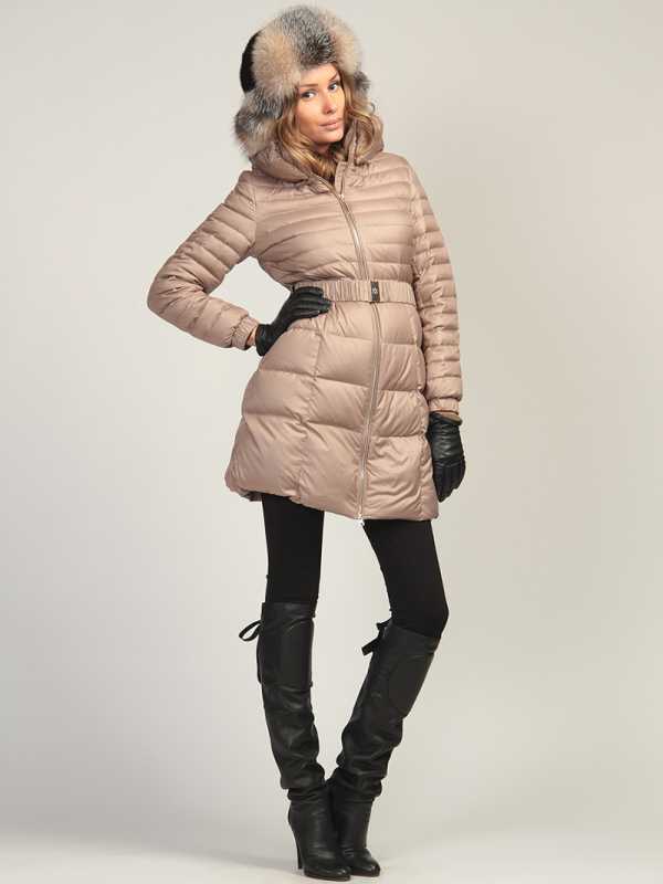 С чем носить пуховик приталенного фасона? Женственные модели под пояс, пуховики с меховой отделкой, крупным отложным воротником можно носить с ботильонами и сапогами на каблуке или высокой танкетке.