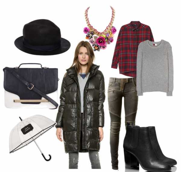 А в остальном проблем, с чем носить длинный зимний пуховик, возникнуть не должно: