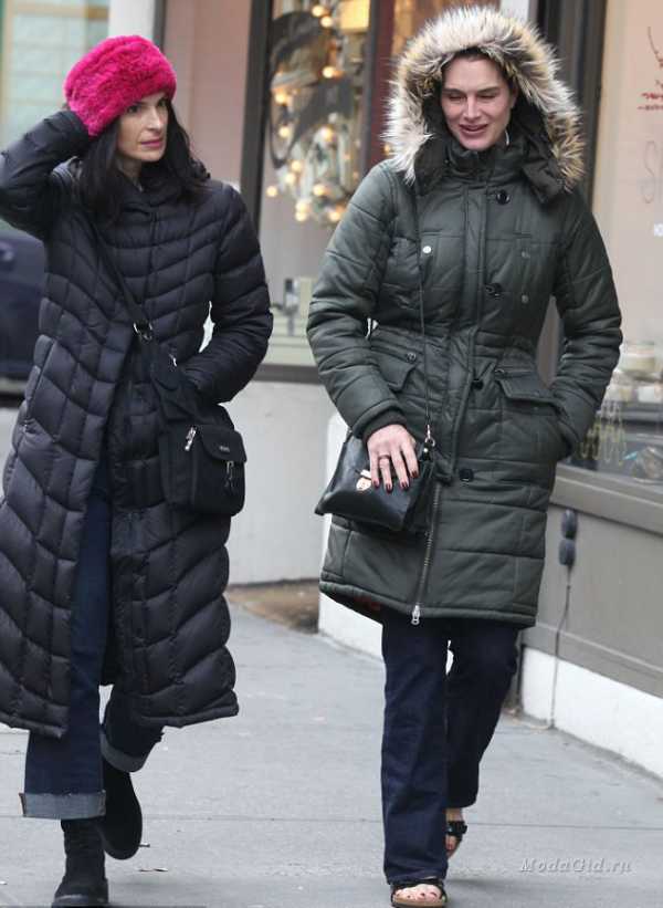 Вот, Сара Джессика-Паркер часто замечена в пуховике в городских условиях. И Эннистон. А что же Ева? Один раз. На лыжном курорте.