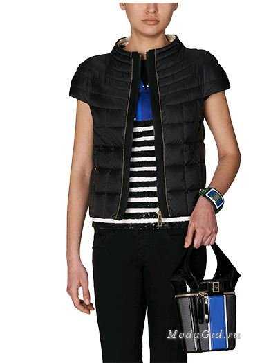 - Стеганые элементы, смещенные вертикально, визуально стройнят фигуру.