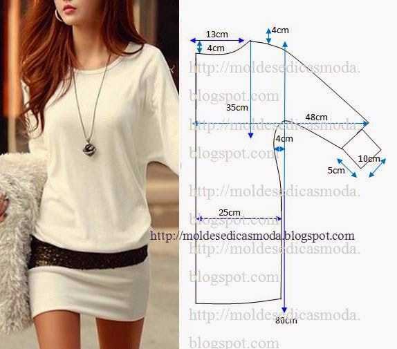 Вы можете самостоятельно регулировать ширину платья, как это указано на схеме. Но не забудьте о вытачках в области груди. Ведь именно они делают фасон платья женственным, а не похожим на обычный мешок. Если вас интересует выкройка платья-трапеции с рукавом, то можно снять мерки с любой футболки, которая хорошо на вас сидит. Такой способ хорошо подходит для новичков в области шитья.