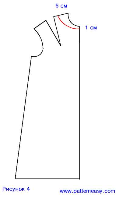 На рисунке 4 показано, как провести разрез «лодочку» (углубить горловину на 1 см и расширить на 6 см).