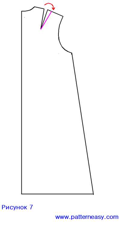 Шаг 3: По нашей модели, горловина имеет разрез «лодочку» и вершина плечевой вытачки мешает его провести. Для этого мы перенесем ее в сторону плечевой точки (рисунок 3).