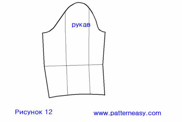 - Каждую из половин рукава вновь поделить пополам и по всей длине прочертить вертикальные отрезки.