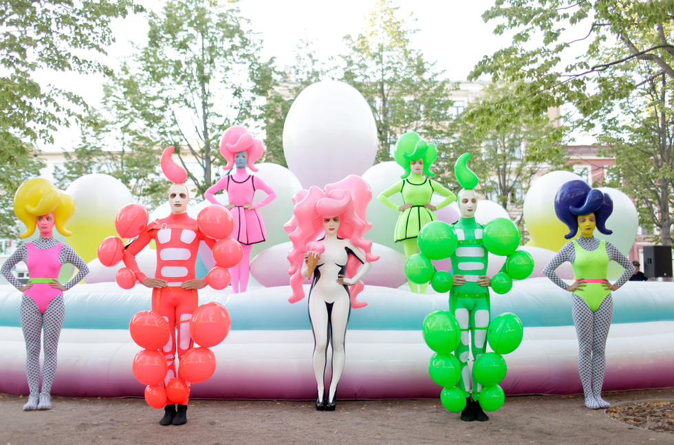Ну, он скорее очень активный. Но не агрессивный. Латекс как материал усиливает любое высказывание. Если это сексуальный жест, он его усилит, если невинная игра — произойдет то же самое. Когда надеваешь латексный костюм, чувствуешь себя супергероиней: не просто красивой, а суперкрасивой, не просто женственной, а ультраженственной. Он будто дает сверхвозможности. При этом я специально закрываю маской лицо, чтобы перестать быть собой — Сашей Фроловой, и превратиться в скульптурный объект.