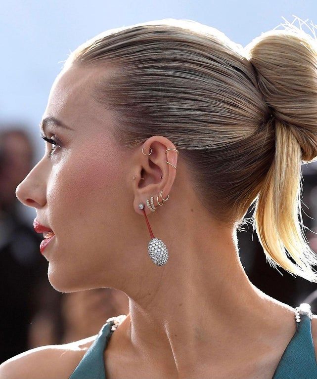 ScarJo, безусловно, наша муза пирсинга, и она потрясла множество ушей на красной ковровой дорожке. Нам особенно нравится этот шикарный образ с несколькими кольцами и заклепками.
