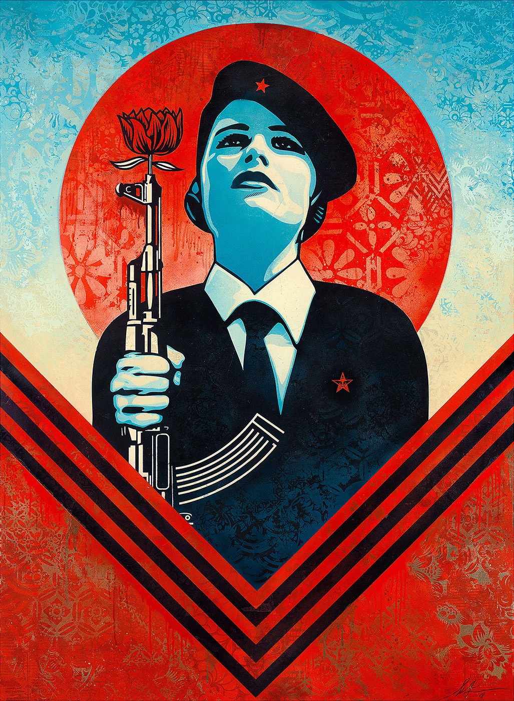 ВЗРОСЛЫЕ СБОРНЫЕ ЭКСКУРСИИ | ДЕТСКИЕ СБОРНЫЕ ЭКСКУРСИИ | ПЛЕЙЛИСТ OBEY НА YANDEX. Московский музей современного искусства и Фонд содействия развитию современного искусства RuArts представляют первую в России персональную выставку одного из самых влиятельных уличных художников современности Фрэнка Шепарда Фэйри. Проект «Форс-мажор» демонстрирует произведения, созданные автором в течение последних 25 лет, а также знакомит зрителей с новыми работами, подготовленными специально для выставки в ММОМА. Проект организован при участии творческого объединения АРТМОССФЕРА и входит в специальную программу III Биеннале искусства уличной волны. Экспозиция, в разработке которой участвовал Шепард Фэйри, построена по тематическому принципу и отражает ключевые мотивы и периоды в творчестве автора: от увлечения андеграундом и советским конструктивизмом до поп-арта и рекламного дизайна. Философия DIY в среде скейтбордистов и панков, а именно к их среде относит себя Шепард, исключает зависимость от общепринятых норм, манифестируя полную свободу самовыражения. Субкультура DIY была не единственным источником вдохновения Фэйри. Русский авангард, в частности Александр Родченко и братья Стенберги, привнесли конструктивистские черты в творчество стрит-артиста. В дизайне наклеек, плакатов, трафаретов Шепард предпочитает минималистичную цветовую палитру, знаковую систему изображения, выразительный шрифт. Выбранный художественный язык помогает создать лаконичное изображение, доступное для понимания широкими массами. Этой же идее служат выразительные средства поп-арта, а главное, прием узнаваемой иконографии. И если Уорхол использовал образы звездных персон и товаров массового потребления, то Шепард делает акцент на социально-политических проблемах и гуманистических ценностях, высказывая активную гражданскую позицию. Искусство Шепарда Фэйри, по определению самого художника, — реакция на форс-мажорные обстоятельства, попытка борьбы с помощью провокационного языка уличного искусства. Будь то плакаты, посвященные войне и миру или же проблеме защиты окружающей среды — они носят пропагандистский характер, совмещают конфликтующие символы, предлагая зрителю неоднозначные интерпретации. Дуализм считывается в работах Dark Wave (2010), Global Warning (2010), Paradise Turns (2015), где Шепард изображает идиллический пейзаж, но указывает на то, что из-за интересов корпораций, экология может быть разрушена. Шепард живет и работает по принципу «делать добро и реагировать на зло», стремясь с помощью традиций графического дизайна «уловить нечто универсальное и вечное, но одновременно актуальное в момент кризиса и необходимости». Выставка в ММОМА соответствует авторской позиции и является, с одной стороны, анализом его деятельности, а с другой — обращенным к широкой общественности призывом к ответственной свободе. Шепард Фэйри успешен не только как художник, но и как коммерческий дизайнер. Сотрудничество с компаниями, этически не противоречащими принципам Шепарда, дает ему финансовую возможность поддерживать молодых андеграундных мастеров. Фэйри основал галерею Subliminal Projects во второй половине 90-х, миссия которой преодолевать разрывы между миром искусства и субкультурой и развивать новые формы графики, иллюстрации, фотографии и временных видов искусства. Московский музей 