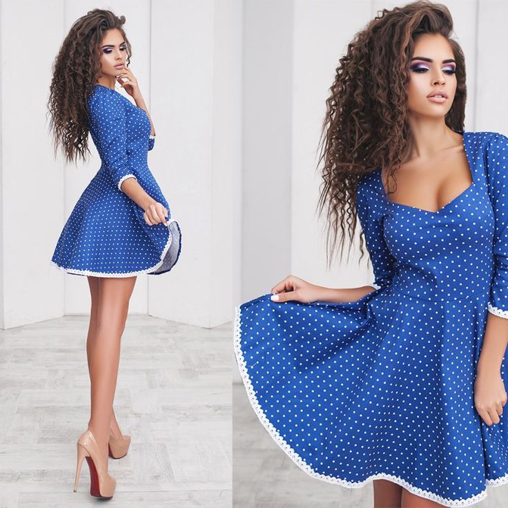 Самая популярная цветовая комбинация — темно-синий и белый. Для повседневного образа наденьте платье в горошек с белыми кроссовками. На ночь вам просто нужно надеть каблуки, и вы будете готовы. Модели небесно-голубого цвета — это классический летний вариант, который можно носить с сандалиями, танкеткой или кроссовкам.