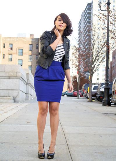 С этим руководством легко узнать, как носить средние синие юбки-карандаш!