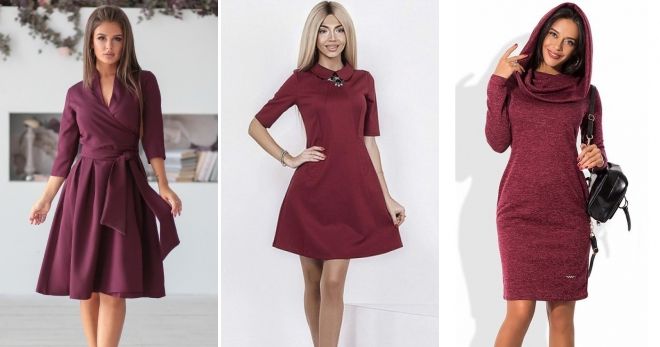 Хотя бордовый цвет больше подходит для вечерних платьев, нежели для повседневных, но и второй вариант не исключен. Он визуально уменьшает объемы фигуры, что является важным козырем. Многие фасоны в сдержанном стиле гармонично вписываются в офисный гардероб, а стильные модели длиной мини и миди в повседневном дизайне можно надеть на прогулку, в кино или театр.