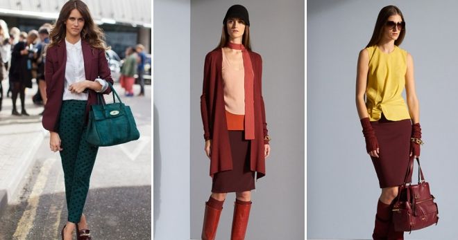 Бордовый цвет в одежде, аксессуарах и косметике. Фото