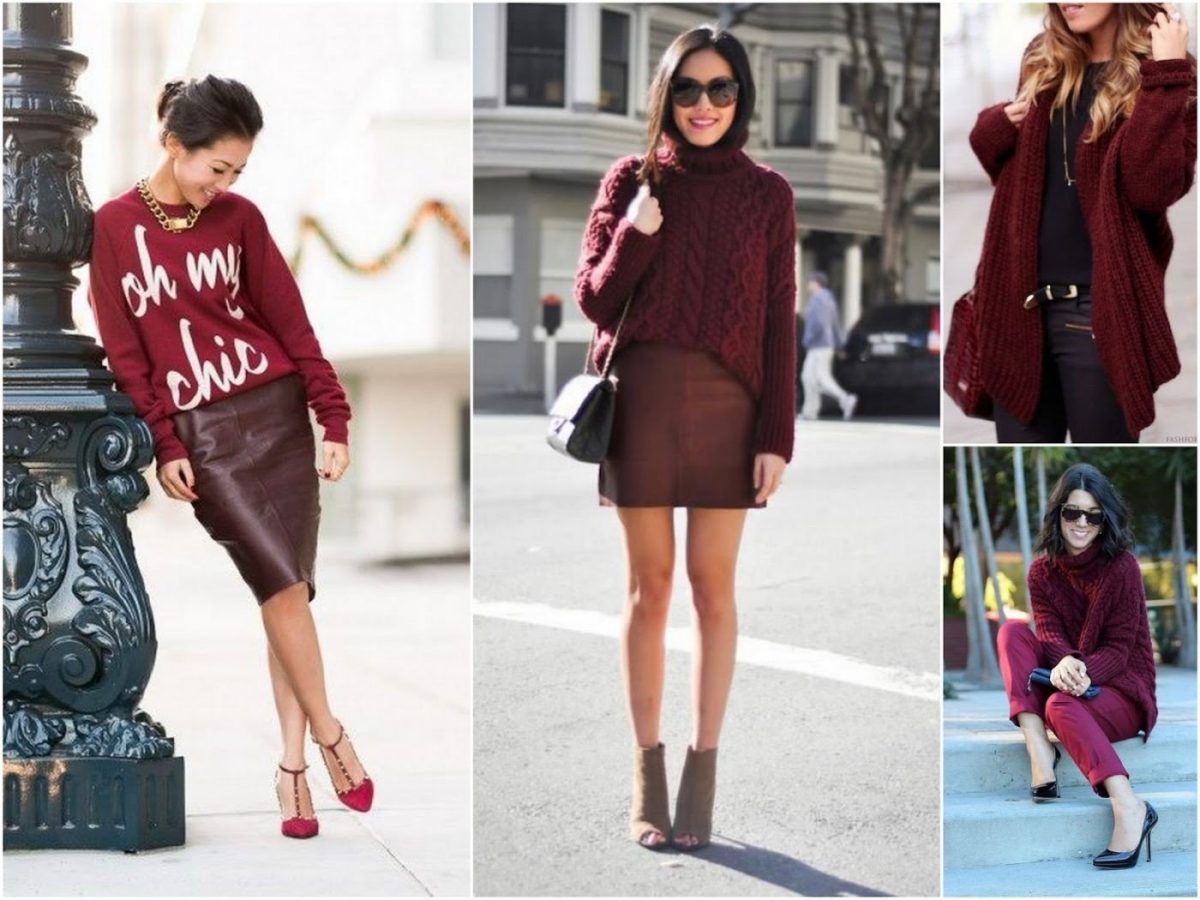 Сочетание бордового цвета с другими в одежде: Сочетание бордового цвета в одежде