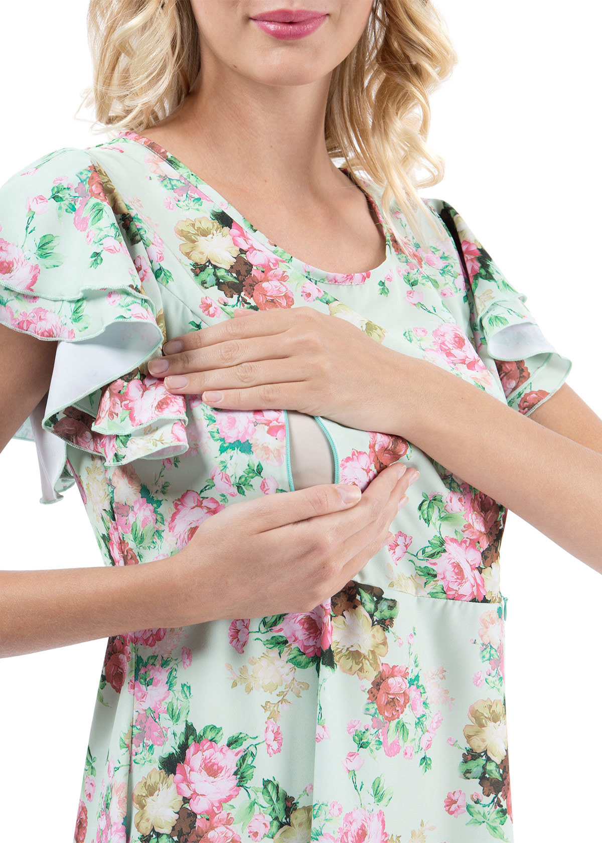 - Для лета 2020 года уместным будет наличие свободных летящих туник с оригинальным тропическим принтом. Не менее женственно будут смотреться на будущих мамах и модели из белого хлопка, украшенные кружевами.