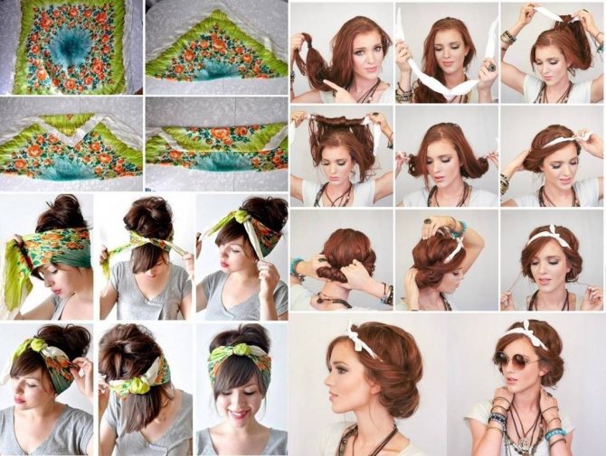 Стильные и красивые платки на голову можно использовать для украшения всевозможных причесок: