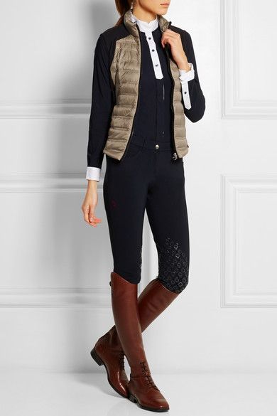 - Брюки облегающего силуэта. Но также вполне могут подойти бриджи или брюки-галифе.