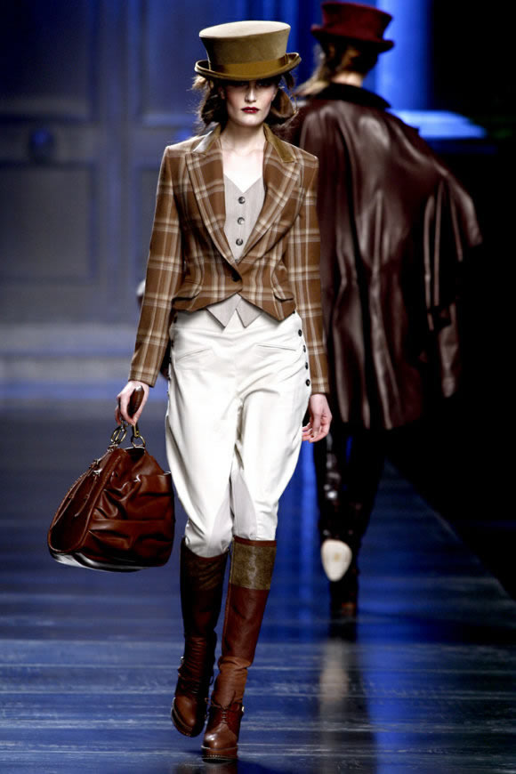 Чаще всего дизайнеры стараются обыграть в своих коллекциях один элемент, ярко представляющий стиль Дерби. К примеру, брюки-галифе от Николя Гескьера. Ну а модный бренд Hermes представил вниманию модниц, образ, полностью повторяющий форму жокея: жилет, высокие сапоги, котелок, брюки-галифе. Поэтому только сами женщины вправе решать, насколько предложение дизайнеров отвечает их вкусовым предпочтениям.