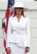 Очень элегантный белоснежный костюм от Herve Pierre, в котором Мелания Трамп вместе с супругом встречалась с президентом Франции и его супругой, мог бы не войти в список наиболее удачных нарядов первой леди, но шляпа в тон завершила образ, сделав его безупречным.