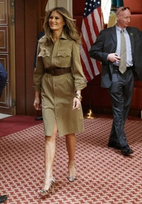 Первую леди довольно часто критикуют и даже подвергают обструкции за выбор ею нарядов – например, печально известная парка с надписью «Мне действительно плевать, а тебе?», в которой Мелания посещала приют для детей-мигрантов, или же выход в лодочках на высоком каблуке во время визита в пострадавший от наводнения Техас.