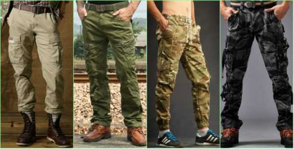 Чинос, карго – это брюки немного зауженные к низу, с накладными карманами. Характерная для военного стиля цветовая гамма указывает на принадлежность этого элемента к данному стилю.