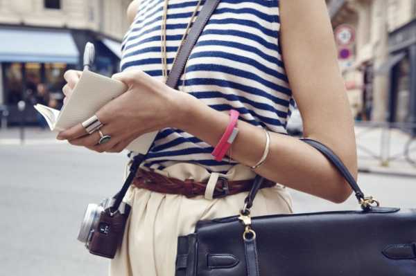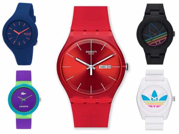 - Аксессуары — яркие, крупные, функциональные: гетры, напульсники, повязки, козырьки и бейсболки, часы на каучуковых и силиконовых браслетах (такие, как на следующем фото), рюкзаки и объемные сумки.