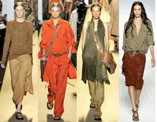 Отличие от спортивного стиля состоит главным образом в материалах, используемых для пошива одежды. Они должны быть только натуральными: лен, хлопок, кожа. Кроме отличительного цвета (земельного оттенка или «хаки»), данный стиль имеет яркие, узнаваемые аксессуары, имеющие этническую стилистику типа шнурков, браслетов, подвесок из кости, дерева или кожи. Современное «сафари» допускает обувь на небольшой танкетке или массивных каблуках. А летним вариантом станут плетеные сандалии или босоножки.