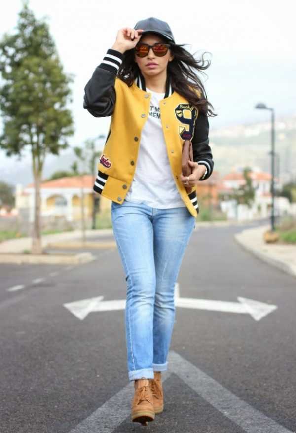 - Sport-casual (повседневный) — одежда с элементами спортивного кроя плюс джинсы, блейзеры, оксфордские рубашки. Этот стиль очень близок к smart casual и преппи, в нем сочетается простота, комфорт и функциональность. Пример комплекта для девушек в стиле sport-casual: джинсы, кеды и свитшот с принтом.