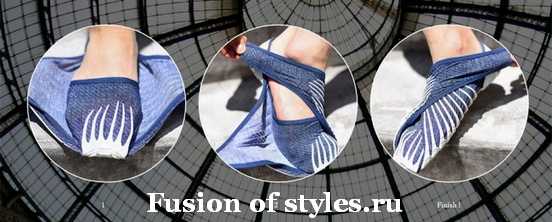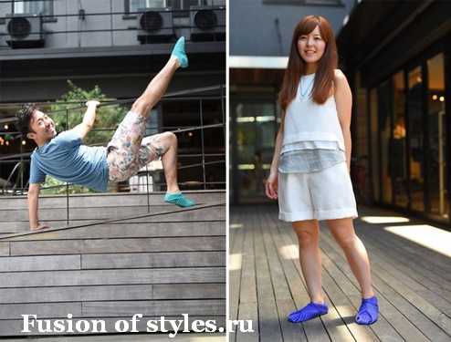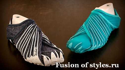Но это еще не все. Креативные японцы как всегда впереди планеты всей и один из них, в частности японский дизайнер Масая Хисимото, придумал уникальную обувь, которая с легкостью повторит все изгибы Вашей стопы, по типу старинных портянок. У этой обуви нет никаких шнурков и металлических застежек. Вместо них используются только липучки. Отличные модели для занятий спортом.
