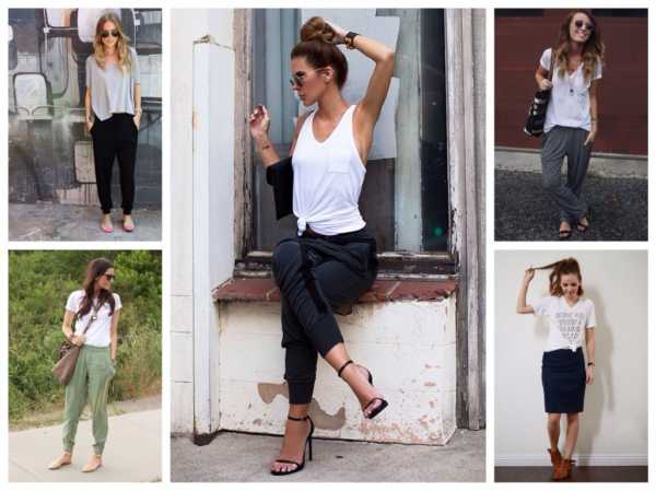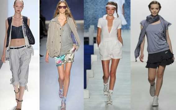В повседневном гардеробе присутствует масса вещей, которые соответствуют спортивному направлению: майки, футболки, шорты, джинсы, ветровки, свитшоты, свитера, свободные рубашки, леггинсы, юбки и большое количество изделий из трикотажа.