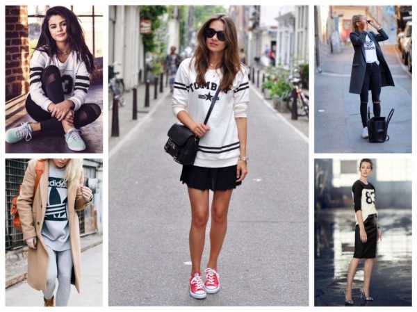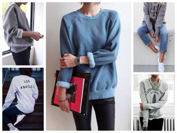- Знаковая вещь гардероба — свитшот с логотипом или принтом. Его можно носить и с джинсам, и с леггинсами, и с короткой юбкой-скейтер.