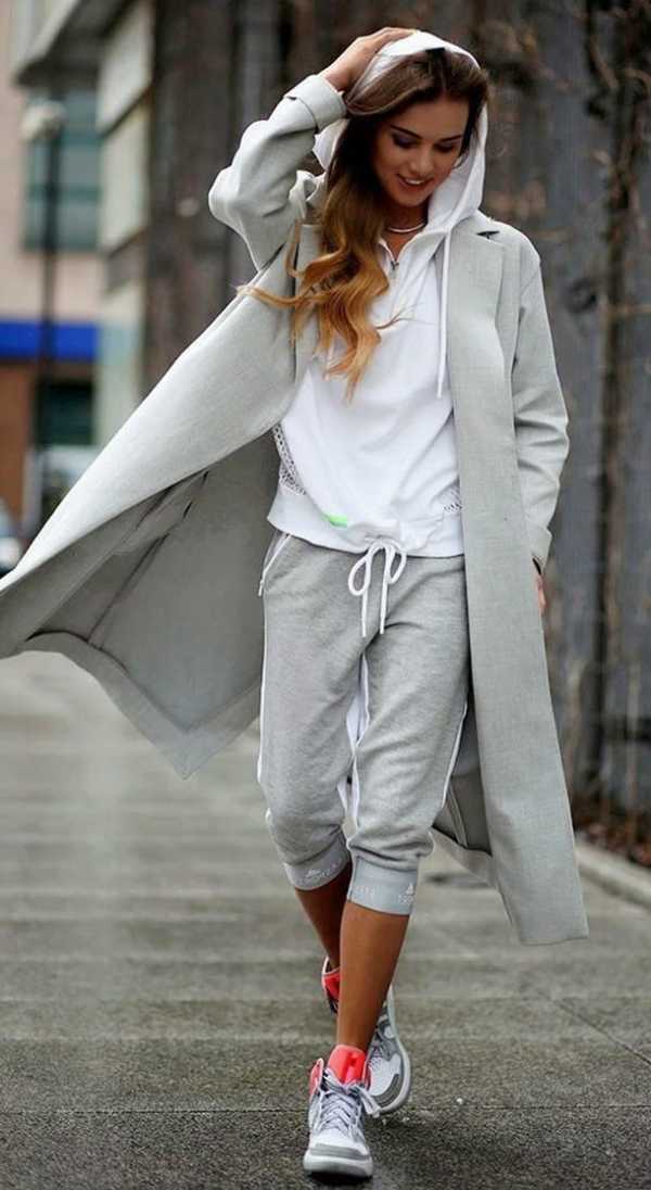 Одежда спортивного стиля предназначена скорее для повседневной носки — она имеет крой, сходный с тренировочными костюмами, похожие детали и отделку, но для настоящего спорта будет непригодна. Это касается и обуви: беговые функциональные кроссовки — для спорта, слипоны и сникерсы на платформе — для создания свежего образа в стиле sport-chic.