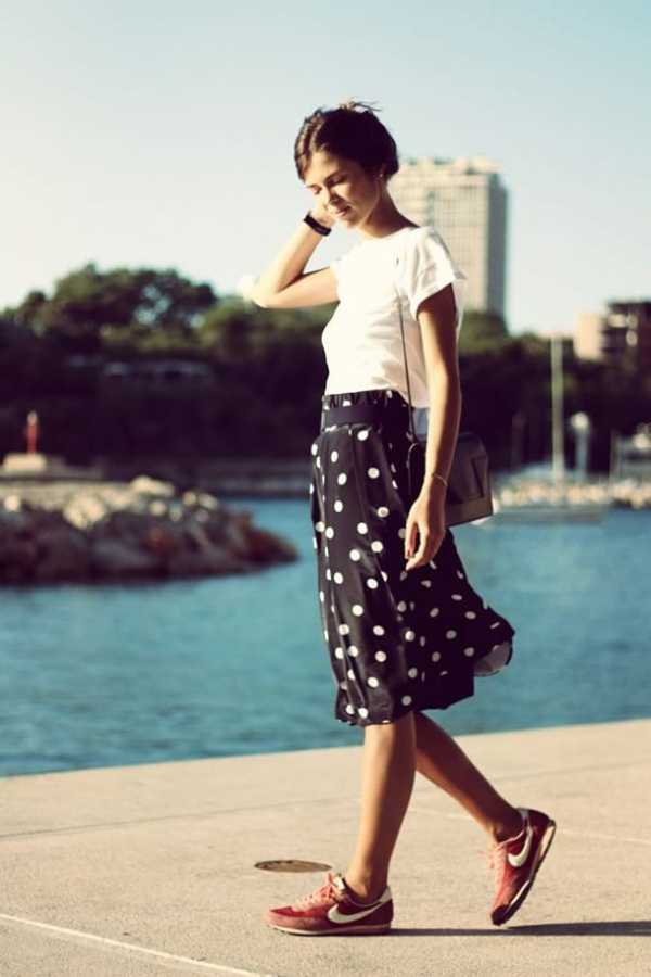 Кеды и кроссовки сегодня носят не только под джинсы, но и под самую что ни на есть женственную одежду – платья, юбки и сарафаны.
