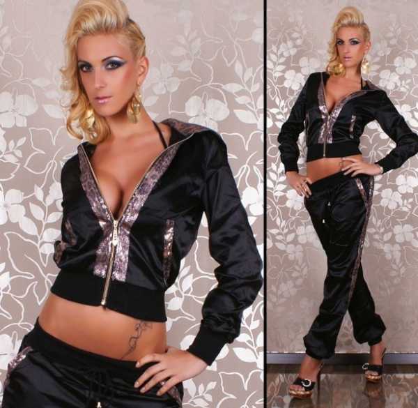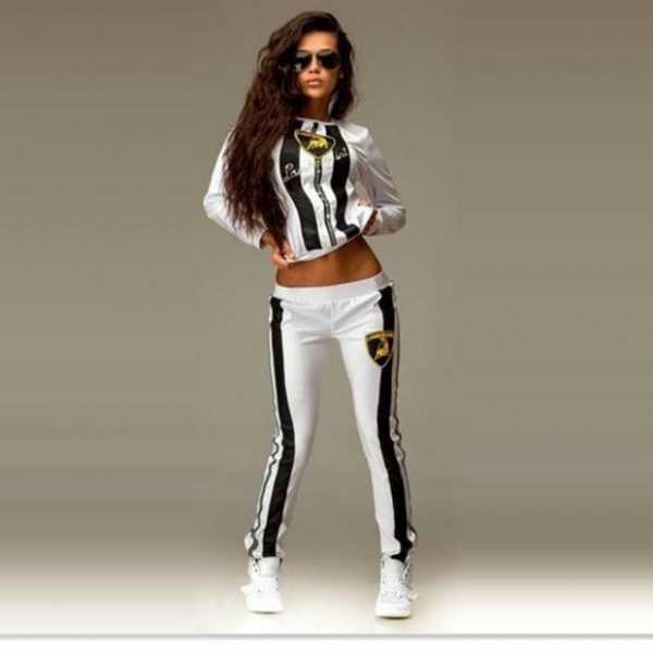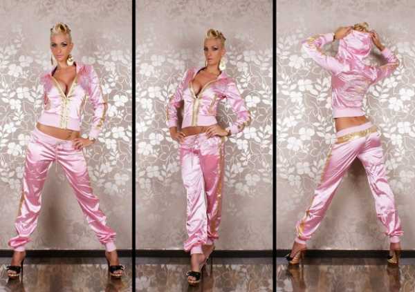 Женские же вещи отличаются большим буйством красок и большей их насыщенностью. Цветовая гама женских вещей может варьироваться от чистых оттенков до спокойных и сдержанных. Также в женском варианте спорт-глэма существуют декорирующие элементы в виде страз, что для мужчины будет выглядеть достаточно странным.