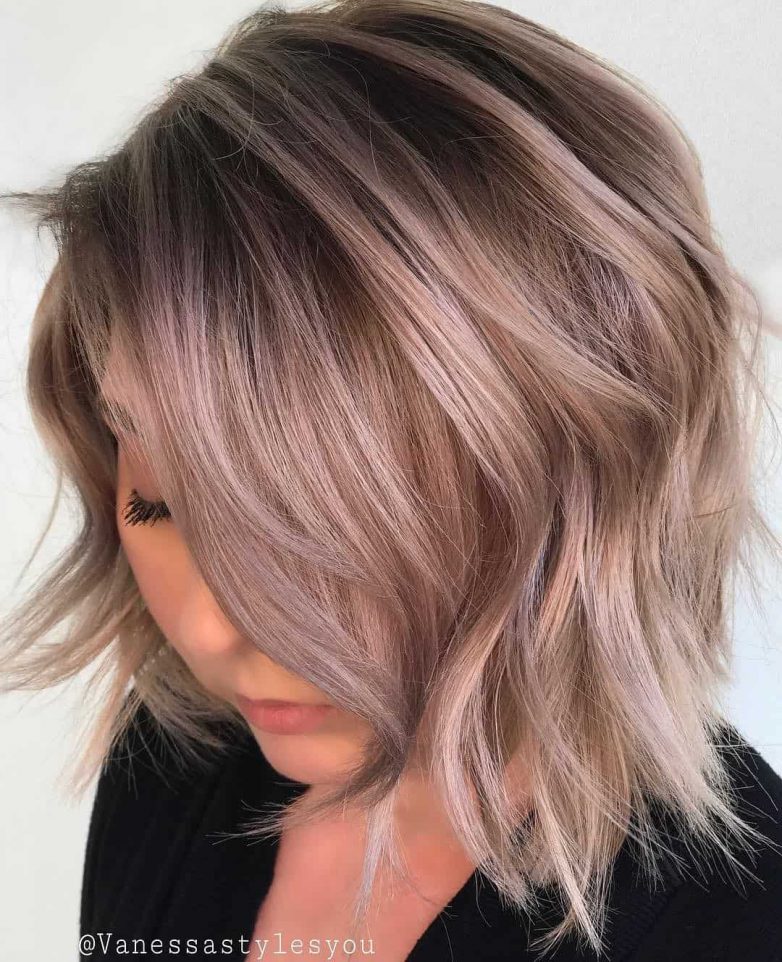 Градуированные стрижки средней длины буквально созданы для балаяжа! Если вы темноволосы, подходящими оттенками станут золотистый, медовый и русый.