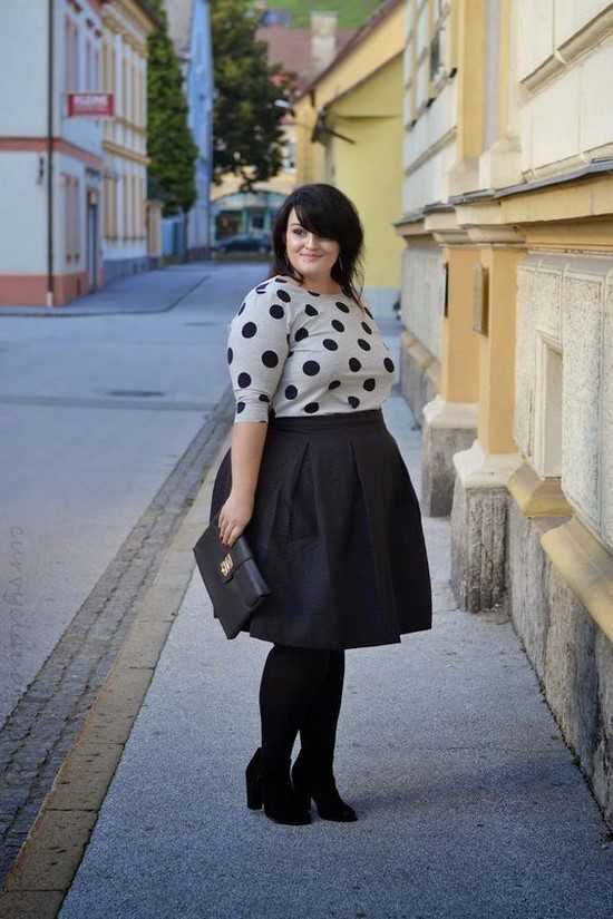 В модный осенний гардероб 2019-2020 полным девушкам, обожающим мини можно включить трапециевидную юбку до колена. Этой осенью не стоит бояться сексуальных образов даже пышным девушкам.