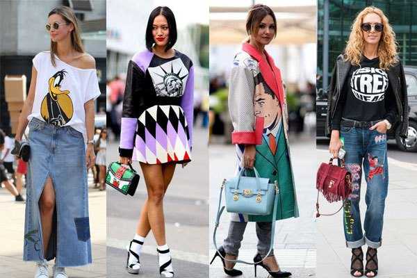 При этот тут вы встретите, как и демократичные универсальные образы, так индивидуальные миксы, броские и нетрадиционные. Цветовая палитра при этом может быть спокойной или яркой, но в любом случае приветствуется использование оригинальных принтов, сочетание несочетаемого и добавление в образ уличной стилистики, а также бохо.