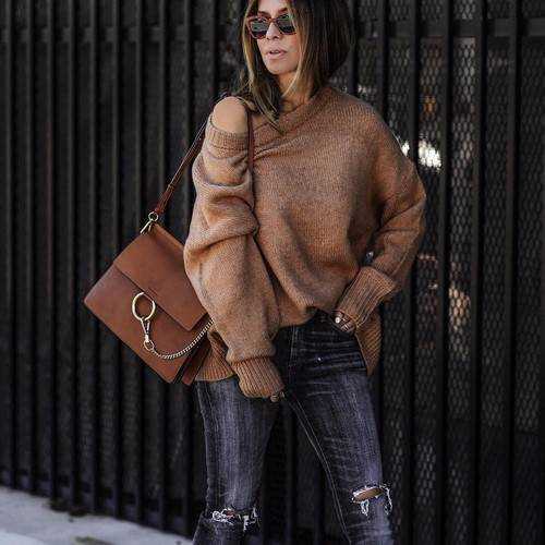 Вместо того, неплохими станут осенние образы с джинсами с небольшими разрезами и потертостями. В качестве верха подойдут вязаные кофты, свободные свитера ярких оттенков, оригинальные джемпера и рубашки.