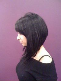 Девушка по желанию выбирает резкий переход от коротких волос на затылке к длинным прядям спереди. Также существует плавный переход со сглаженными углами.