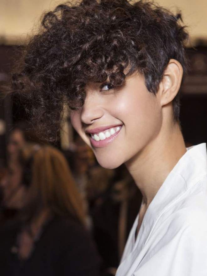 SourceЭто стиль для всех дам, которые хотят создать мягкий образ пикси. Чтобы получить эту прическу, попросите своего парикмахера сделать вам челку спереди, которая будет обходить ваше лицо под углом, а остальные волосы оставить длинными сзади. Затем завершите свой образ этими неряшливыми кудрями, и вам понравится ваш новый стиль.