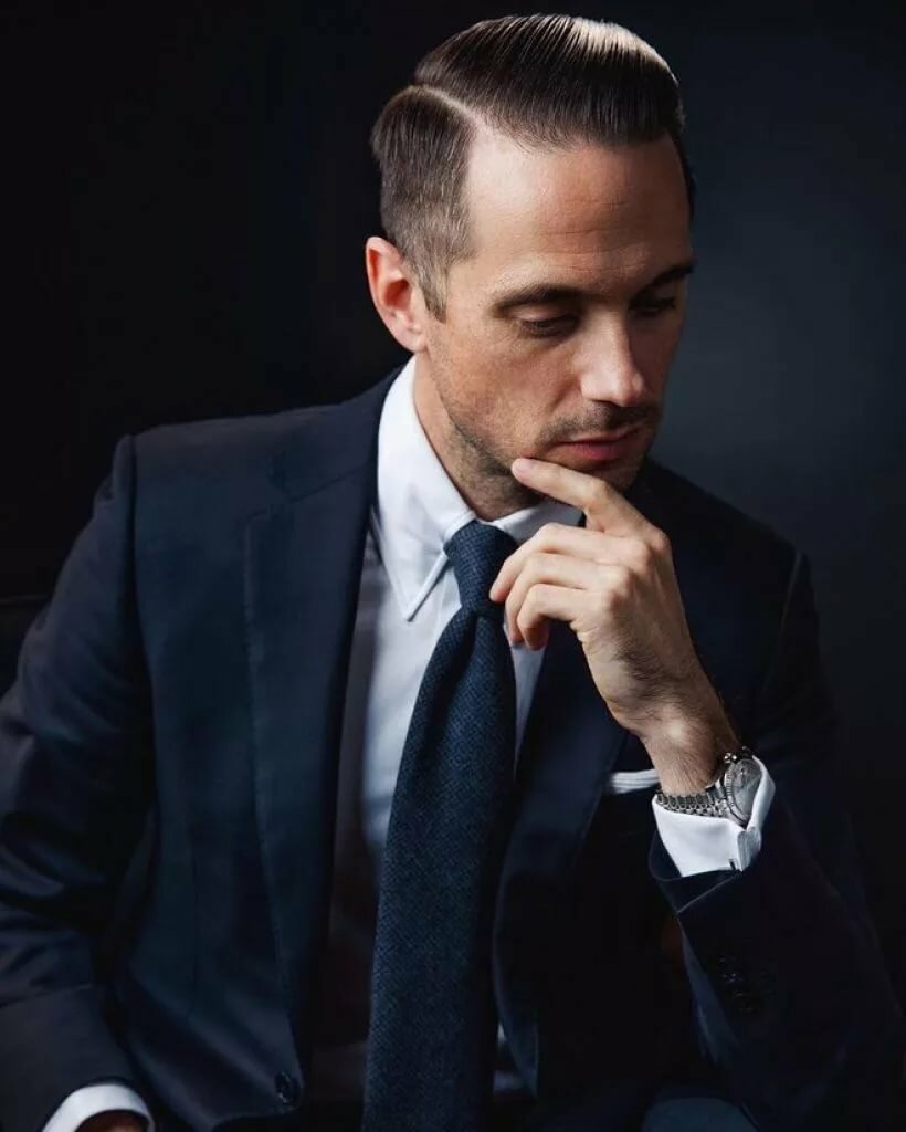 Возвращение моды на 50-е годы прошлого века способствовало росту популярности стрижки «британка». Она подойдет мужчинам с густой шевелюрой, причем кудри — не повод отказываться от нее. Они позволяют создать как нарочито элегантный, так и юный и бесшабашный образ.